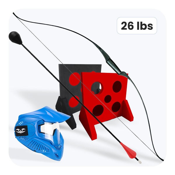 Die 26 lbs Bögen garantieren intensive Emotionen und höhere Präzision, was fortgeschrittene Spieler schätzen. Schnelle Pfeile mit leichter, aerodynamischer Konstruktion reduzieren das Verletzungsrisiko und ermöglichen sicheres Spielen, auch bei hoher Teilnehmerrotation.
