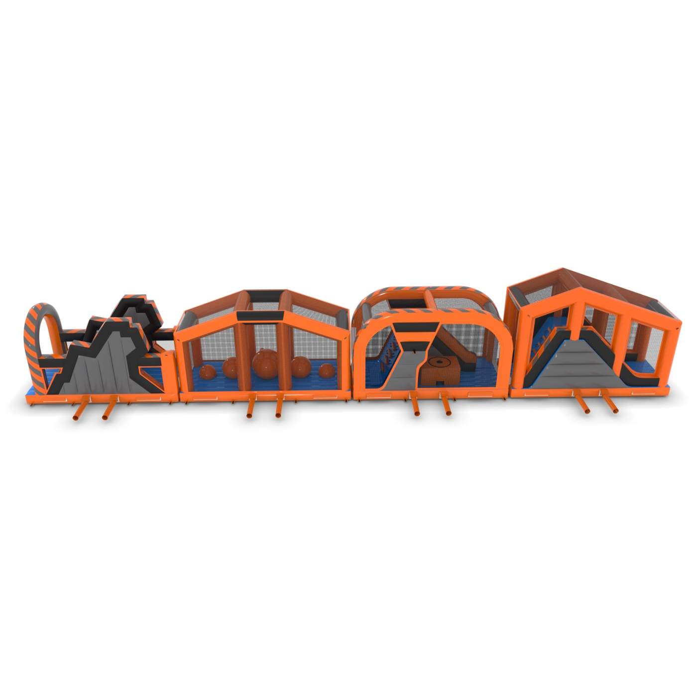 Aufblasbare Hindernisbahn Classic - 30m ist eine aufblasbare Attraktion für all jene, die den Geist des Wettkampfs spüren. Der Spaß beginnt, sobald Sie den Wettkampf mit anderen Spielern aufnehmen. Der Schwierigkeitsgrad wächst mit dem Entwicklungsstand und der Fitness der gegnerischen Gruppe. Das aufblasbare Produkt sorgt für jede Menge Spannung – der Wettkampf ist jedoch für die Teilnehmer sicher. Er erfordert keine überdurchschnittliche körperliche Fitness. Mit dem aufblasbaren Spielgerät für Wettkämpfe kann fast jeder spielen. Aufblasbare Hindernisbahn Classic - 30m kann im Freien, aber auch in einer Sporthalle verwendet werden – also das ganze Jahr über.
