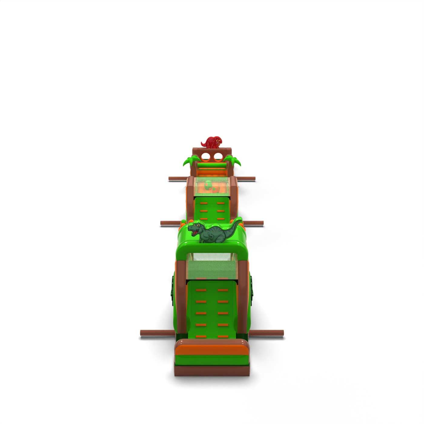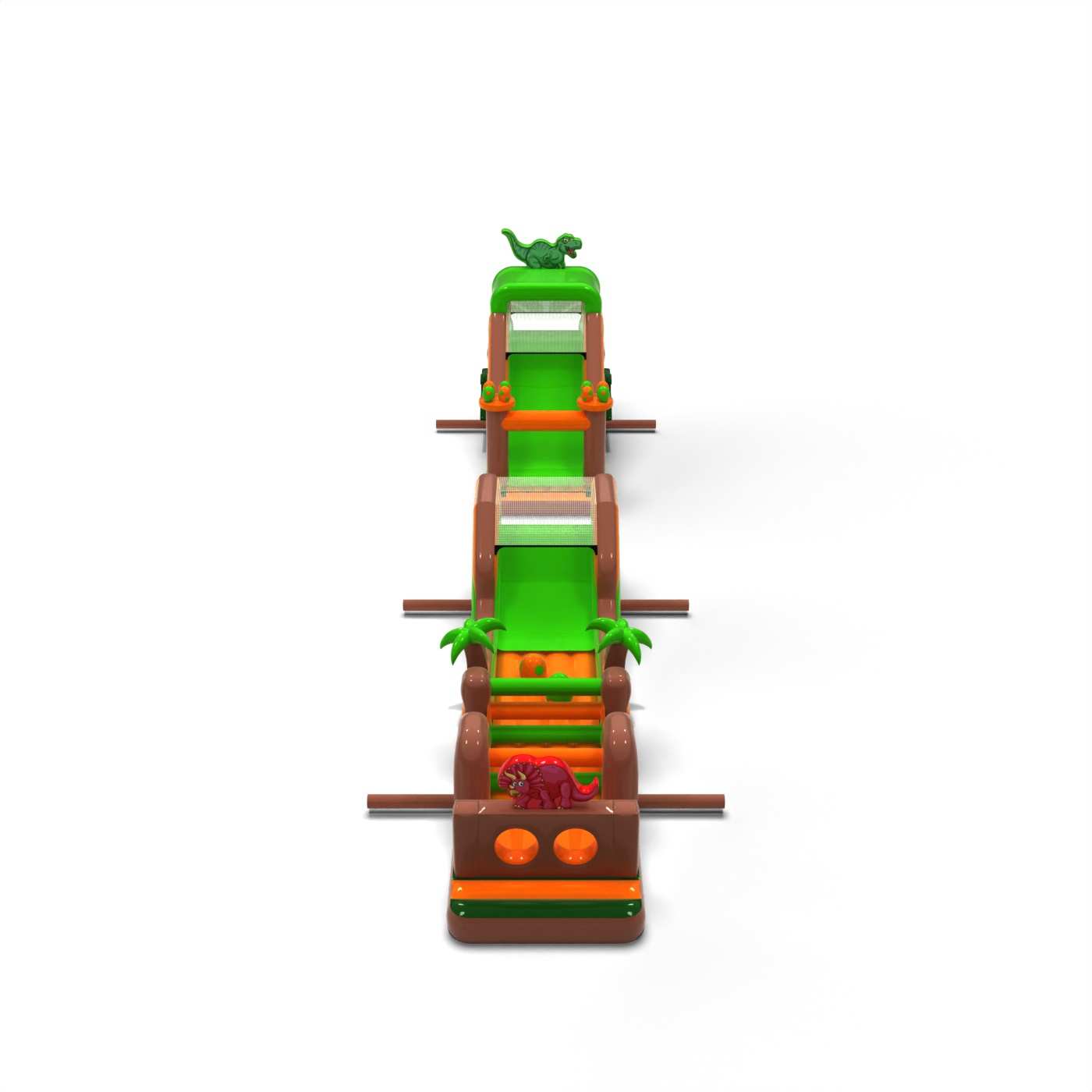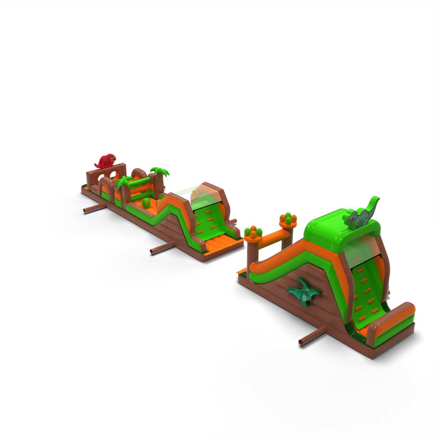 Die Jura-Atmosphäre und die beeindruckende Länge der Strecke machen diese Attraktion sofort zum Blickfang und sorgen für starke Emotionen bei den Teilnehmern. Der weitläufige Hindernisparcours sorgt für dynamischen Spaß, eine gute Kapazität und eine reibungslose Bewegung der Teilnehmer auch bei hoher Auslastung der Veranstaltung. Die Struktur ist für eine intensive Nutzung im Verleih konzipiert und bietet Stabilität und Widerstandsfähigkeit bei häufiger Nutzung. Mit ihrem universellen Dinosaurier-Thema ist die Bahn bei den Kunden sehr beliebt und ein bewährter Bestandteil des Veranstaltungsangebots. Sie eignet sich hervorragend für "Jurassic"-Themenbereiche, große Picknicks und Stadtfeste, bei denen eine Attraktion benötigt wird, die in kurzer Zeit viele Menschen beeindruckt und bedient.