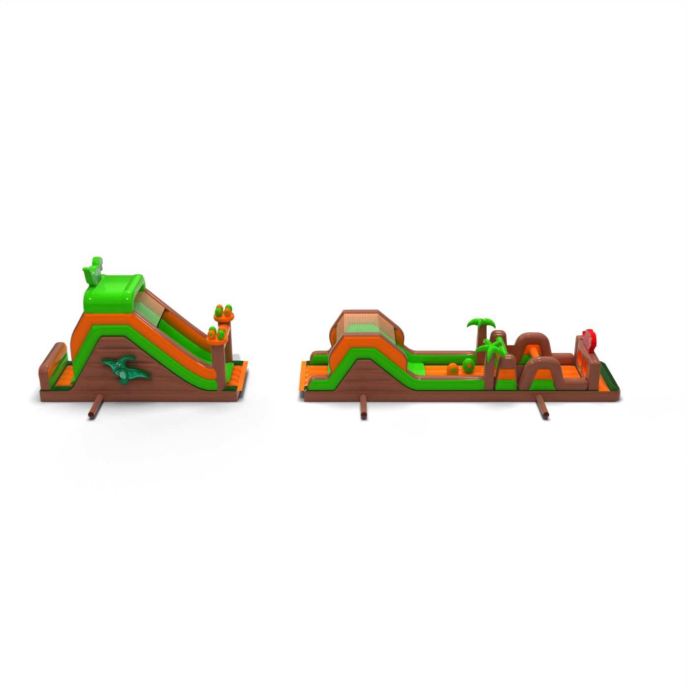 Aufblasbare Dino-Hindernisbahn - 20m ist eine aufblasbare Attraktion für all jene, die den Geist des Wettkampfs spüren. Der Spaß beginnt, sobald Sie den Wettkampf mit anderen Spielern aufnehmen. Der Schwierigkeitsgrad wächst mit dem Entwicklungsstand und der Fitness der gegnerischen Gruppe. Das aufblasbare Produkt sorgt für jede Menge Spannung – der Wettkampf ist jedoch für die Teilnehmer sicher. Er erfordert keine überdurchschnittliche körperliche Fitness. Mit dem aufblasbaren Spielgerät für Wettkämpfe kann fast jeder spielen. Aufblasbare Dino-Hindernisbahn - 20m kann im Freien, aber auch in einer Sporthalle verwendet werden – also das ganze Jahr über.