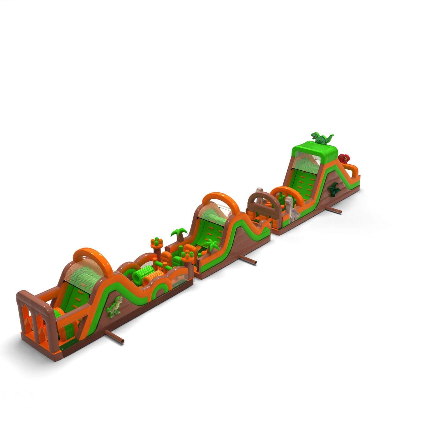 Die monumentale Strecke in Dinosaurier-Atmosphäre schafft eine spektakuläre Spaßzone und wird zum Mittelpunkt jeder Veranstaltung. Der lange, abwechslungsreiche Hindernisparcours ermöglicht intensive Wettkämpfe, hohe Teilnehmerzahlen und eine nachhaltige Bindung an die Attraktion. Es handelt sich um eine professionelle Struktur für große Events, bei denen Stabilität, Langlebigkeit und störungsfreier Betrieb entscheidend sind. Dieser Parcours ist ein starkes Investitionsprodukt, das häufig von Kunden mit Fokus auf große Attraktionen und hohes Ertragspotenzial gewählt wird. Er eignet sich ideal für Massenveranstaltungen, Festivals und große Open-Air-Produktionen, bei denen Größe, Spektakel und zuverlässige Kapazität über den ganzen Tag gefragt sind.