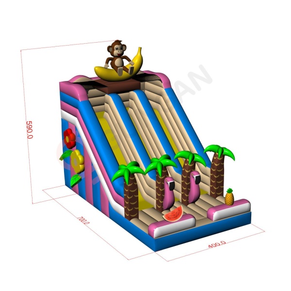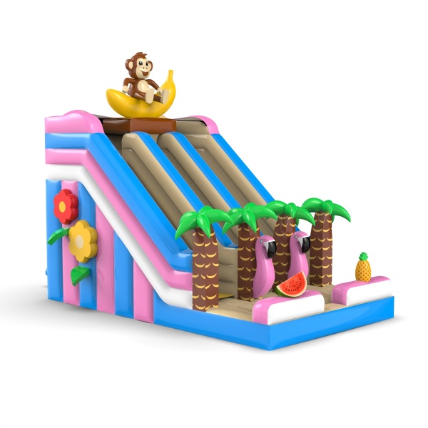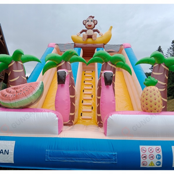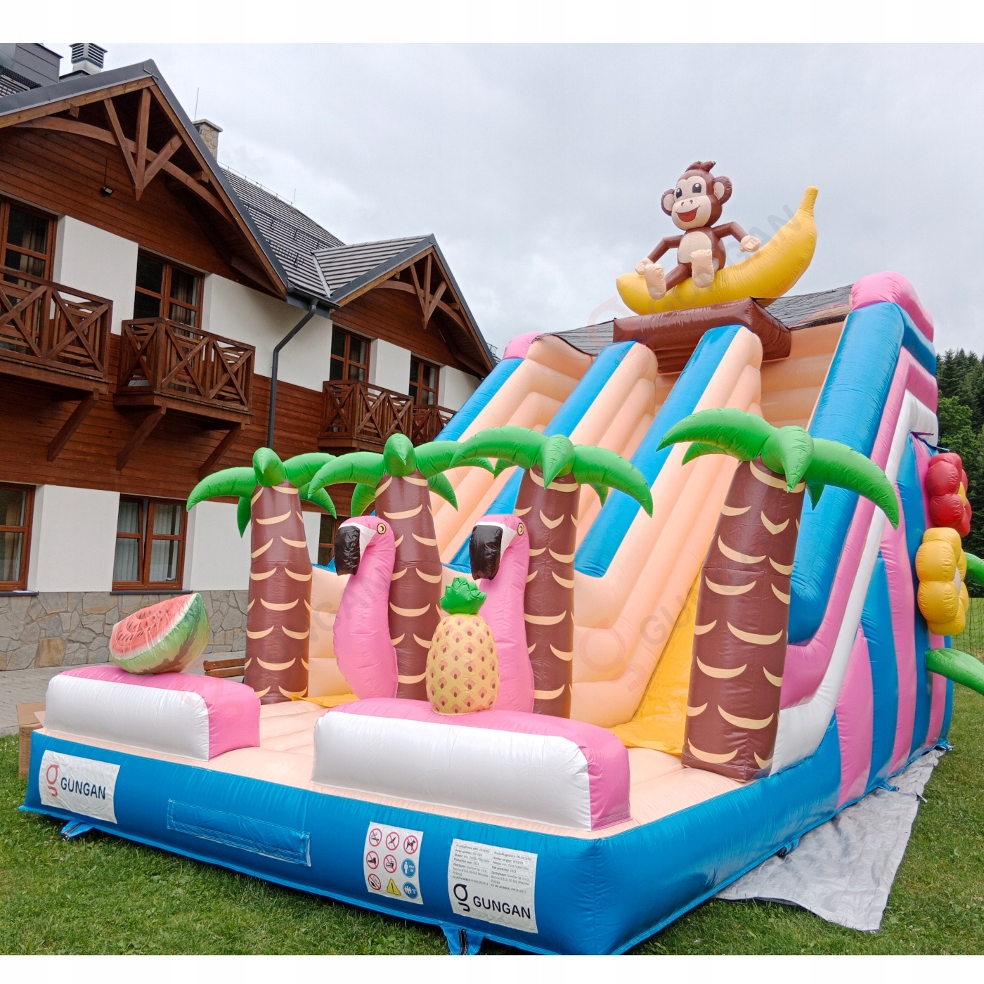 Doppelte aufblasbare Rutsche mit hawaiianischem Thema ist eine fantastische Hüpfburg für Kinder und Jugendliche. Sie lässt sich hervorragend mit unseren weiteren Attraktionen in verschiedenen Themenwelten kombinieren. Doppelte aufblasbare Rutsche mit hawaiianischem Thema zieht sofort die Aufmerksamkeit der Kinder auf sich, sobald sie in Sichtweite ist. Die jüngsten Teilnehmer von Events lieben gute Unterhaltung – deshalb kann diese Rutsche zu den beliebtesten Hüpfburgen in deinem Angebot gehören. Hüpfburgen aus dieser Kategorie sind eindrucksvoll gestaltet, meist reich verziert und mit vielen Elementen ausgestattet, die zu ausgelassenem Springen und Spielen im Freien einladen.