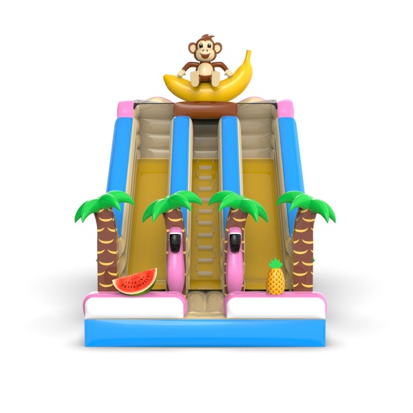 Mit unserer aufblasbaren Doppelrutsche mit hawaiianischem Thema entführen Sie Ihre Kinder auf eine exotische Insel! Mit ihren farbenfrohen Palmen und tropischen Elementen wird sie den Kleinen jede Menge Spaß und Urlaubsabenteuer bescheren. Diese Rutsche ist ideal für Veranstaltungen im Freien, Festivals und Picknicks und entführt Ihre Veranstaltung in ein wahres Paradies voller Spaß!