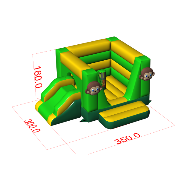 Kleine Hüpfburg mit Rutsche - im Dschungelthema ist eine fantastische Hüpfburg für Kinder und Jugendliche. Sie lässt sich hervorragend mit unseren weiteren Attraktionen in verschiedenen Themenwelten kombinieren. Kleine Hüpfburg mit Rutsche - im Dschungelthema zieht sofort die Aufmerksamkeit der Kinder auf sich, sobald sie in Sichtweite ist. Die jüngsten Teilnehmer von Events lieben gute Unterhaltung – deshalb kann diese Rutsche zu den beliebtesten Hüpfburgen in deinem Angebot gehören. Hüpfburgen aus dieser Kategorie sind eindrucksvoll gestaltet, meist reich verziert und mit vielen Elementen ausgestattet, die zu ausgelassenem Springen und Spielen im Freien einladen.
