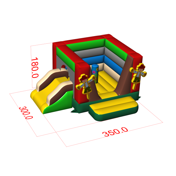 Wie alle unsere aufblasbaren Attraktionen ist auch dieses Produkt aus hochwertigen Materialien gefertigt – in diesem Fall aus PVC der neuen Generation mit hoher Reißfestigkeit. Diese Kleine Hüpfburg mit Rutsche - in einem Bauernthema hat 3 m x 3,5 m x 1,8 m (Länge, Breite und Höhe). Sie entspricht der Sicherheitsnorm DIN EN 14960 für aufblasbare Spielgeräte. Für die Hüpfburg empfehlen wir den Einsatz von Gebläsen, die wir im Set mitliefern. Wie die meisten unserer Attraktionen ist auch diese Hüpfburg mit einer zweijährigen Garantie abgedeckt. Bei Gangaru achten wir darauf, dass du so wenig Aufwand wie möglich hast – deshalb liefern wir im Paket mit der Hüpfburg ein komplettes Zubehörset zur sicheren Befestigung der Attraktion (Seile, Heringe). Die Hüpfburg wurde zudem von einem unabhängigen Sachverständigen auf ihre Sicherheit geprüft.