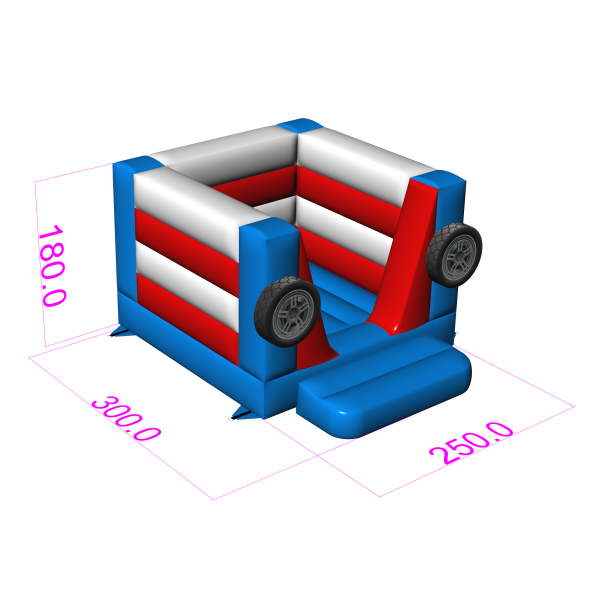 Die Hüpfburg im Autothema ist eine kompakte Attraktion, die durch ihre farbenfrohe Grafik und ihre schlichte Form ins Auge fällt. Die Dekoration im Autothema macht das Gerät ideal für Familienfeiern und Partys im Freien. Die geschlossene Bauweise garantiert einen sicheren Spielraum, und dank der geringen Höhe kann die Hüpfburg auch innerhalb von Veranstaltungsorten bequem aufgestellt werden. Ergänzen Sie Ihr Angebot um eine Attraktion, die das ganze Jahr über funktioniert.
