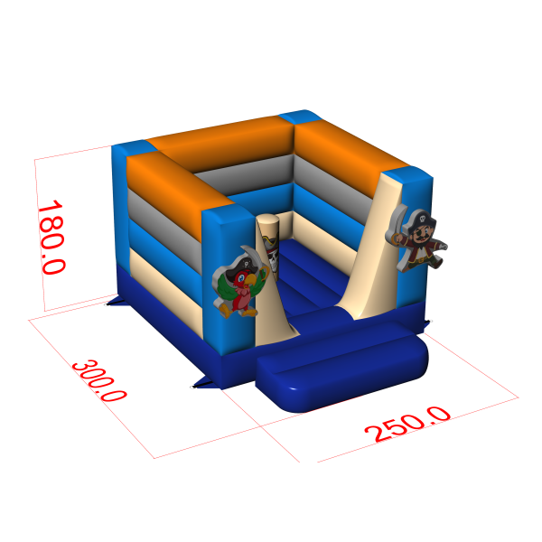 Wie alle unsere aufblasbaren Attraktionen ist auch dieses Produkt aus hochwertigen Materialien gefertigt – in diesem Fall aus PVC der neuen Generation mit hoher Reißfestigkeit. Diese Kleine Hüpfburg - im Piratenthema hat 3 m x 2,5 m x 1,8 m (Länge, Breite und Höhe). Sie entspricht der Sicherheitsnorm DIN EN 14960 für aufblasbare Spielgeräte. Für die Hüpfburg empfehlen wir den Einsatz von Gebläsen, die wir im Set mitliefern. Wie die meisten unserer Attraktionen ist auch diese Hüpfburg mit einer zweijährigen Garantie abgedeckt. Bei Gangaru achten wir darauf, dass du so wenig Aufwand wie möglich hast – deshalb liefern wir im Paket mit der Hüpfburg ein komplettes Zubehörset zur sicheren Befestigung der Attraktion (Seile, Heringe). Die Hüpfburg wurde zudem von einem unabhängigen Sachverständigen auf ihre Sicherheit geprüft.