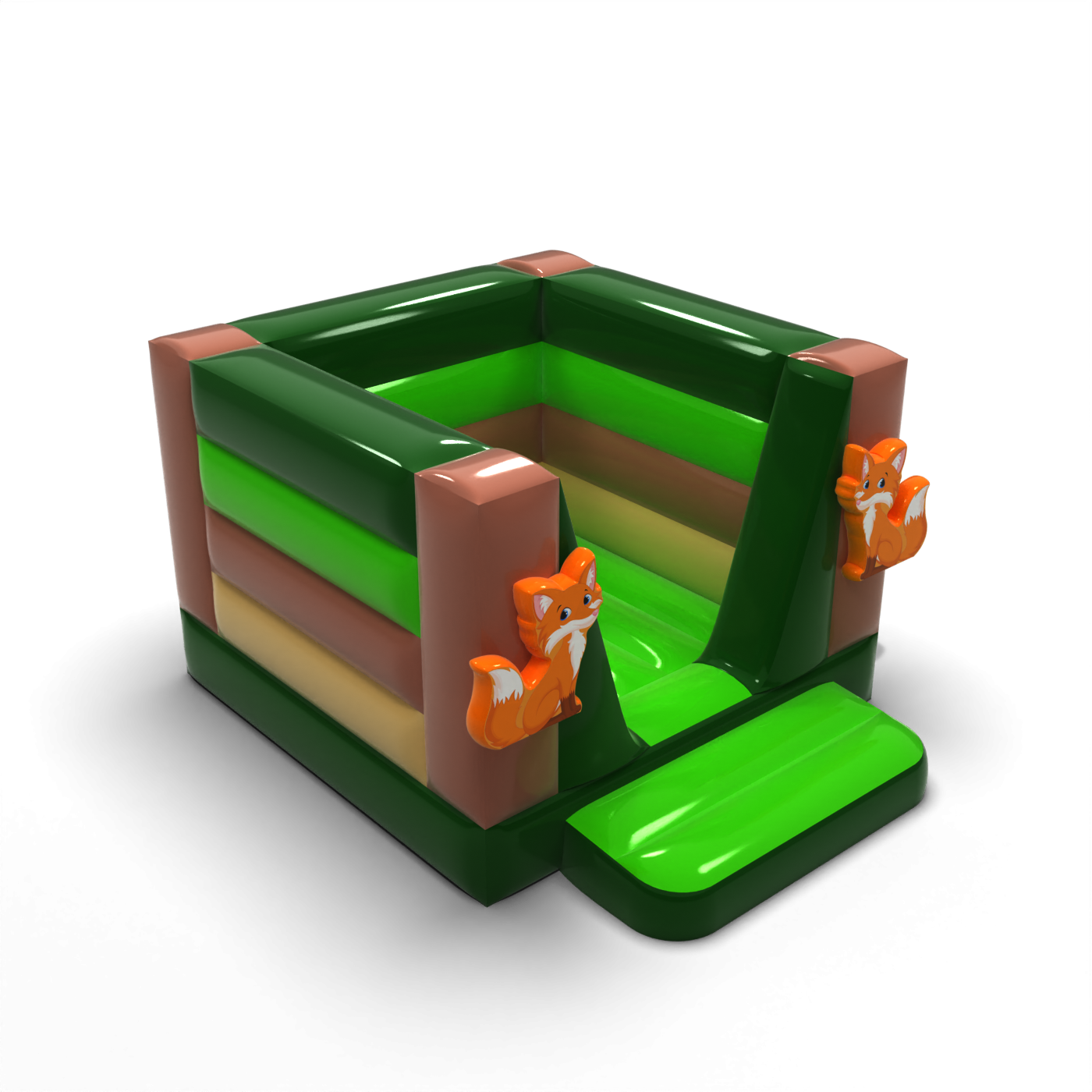 Die Hüpfburg in natürlichen Farben mit fröhlichen Füchsen auf der Vorderseite ist von der Atmosphäre des Waldes inspiriert. Das kompakte Design fördert sicheres Spielen, und die niedrige Höhe erlaubt es, die Attraktion auch in Innenräumen aufzustellen. Das Waldthema lässt sich leicht an Familienpicknicks oder Veranstaltungen im Freien in einer natürlichen Umgebung anpassen. Sorgen Sie für einen modernen Blickpunkt, der sich leicht an verschiedene Veranstaltungsszenarien anpassen lässt.