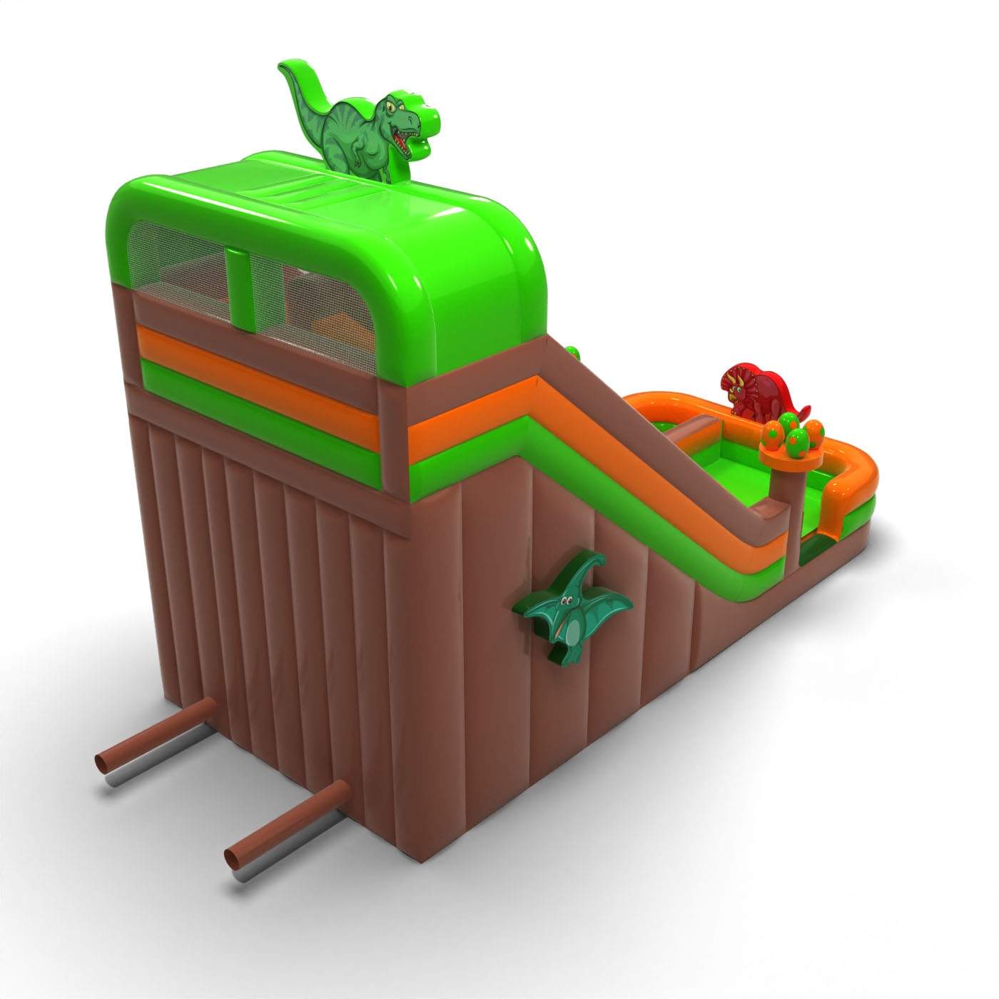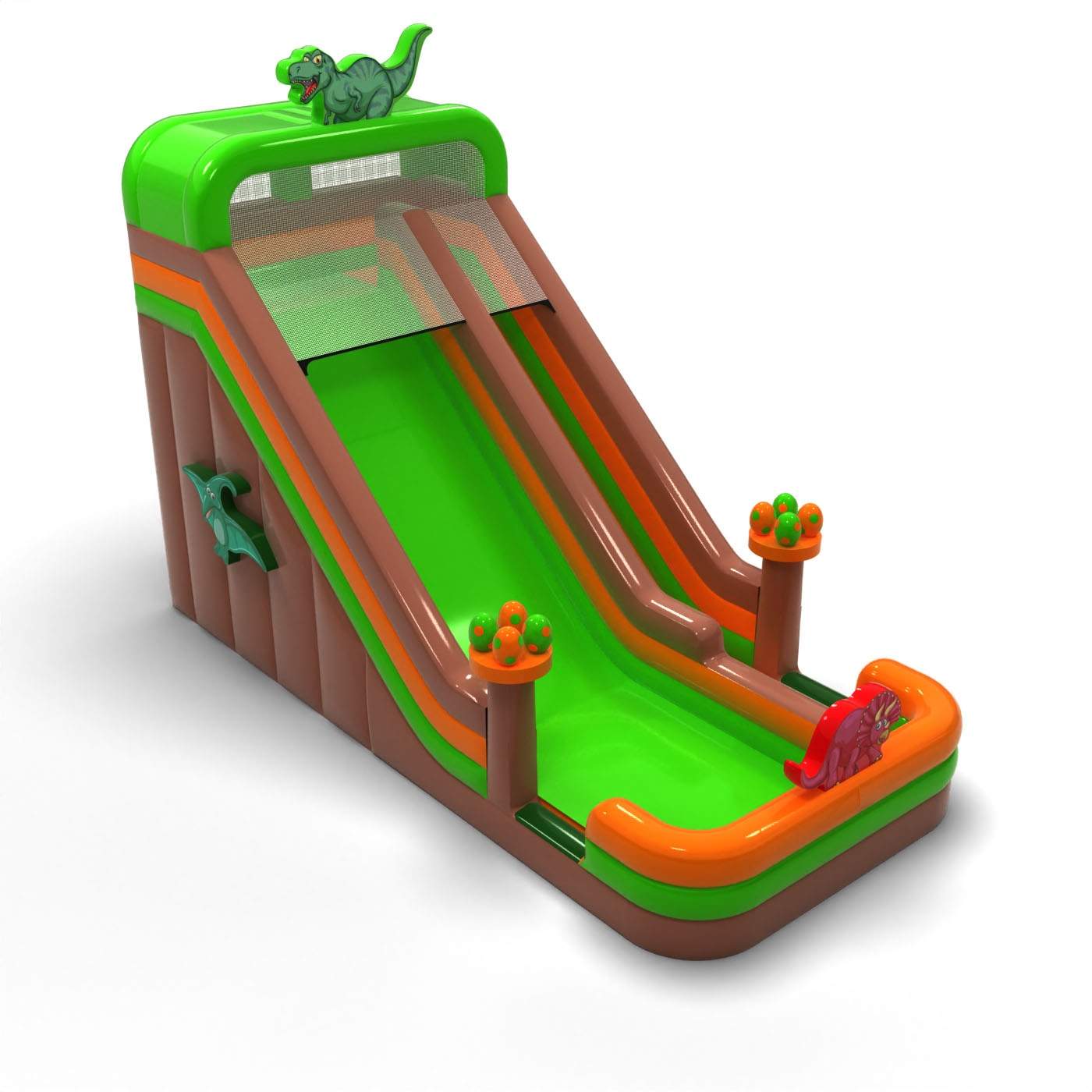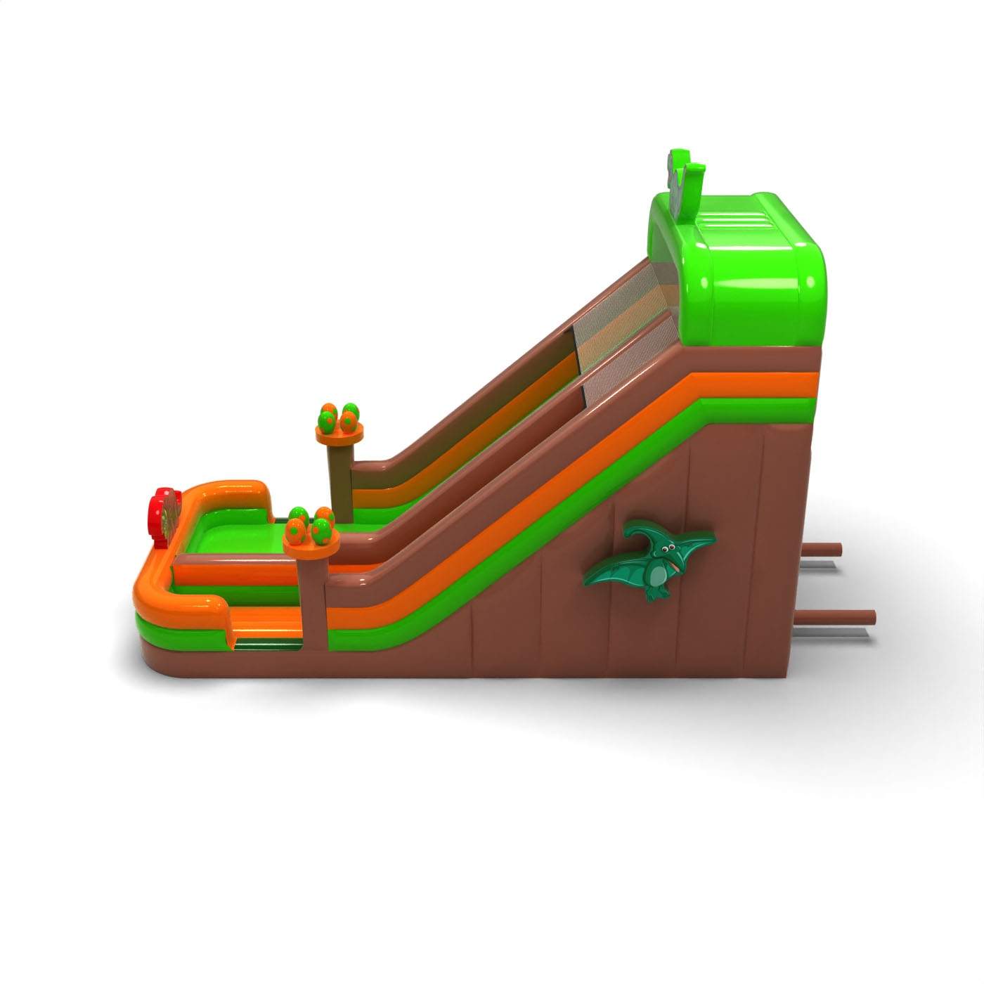 Vergrößerte aufblasbare Rutsche im Dinosaurier-Thema ist eine fantastische Hüpfburg für Kinder und Jugendliche. Sie lässt sich hervorragend mit unseren weiteren Attraktionen in verschiedenen Themenwelten kombinieren. Vergrößerte aufblasbare Rutsche im Dinosaurier-Thema zieht sofort die Aufmerksamkeit der Kinder auf sich, sobald sie in Sichtweite ist. Die jüngsten Teilnehmer von Events lieben gute Unterhaltung – deshalb kann diese Rutsche zu den beliebtesten Hüpfburgen in deinem Angebot gehören. Hüpfburgen aus dieser Kategorie sind eindrucksvoll gestaltet, meist reich verziert und mit vielen Elementen ausgestattet, die zu ausgelassenem Springen und Spielen im Freien einladen.