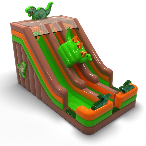 Doppelrutsche mit Dinosaurier-Motiv ist eine fantastische Hüpfburg für Kinder und Jugendliche. Sie lässt sich hervorragend mit unseren weiteren Attraktionen in verschiedenen Themenwelten kombinieren. Doppelrutsche mit Dinosaurier-Motiv zieht sofort die Aufmerksamkeit der Kinder auf sich, sobald sie in Sichtweite ist. Die jüngsten Teilnehmer von Events lieben gute Unterhaltung – deshalb kann diese Rutsche zu den beliebtesten Hüpfburgen in deinem Angebot gehören. Hüpfburgen aus dieser Kategorie sind eindrucksvoll gestaltet, meist reich verziert und mit vielen Elementen ausgestattet, die zu ausgelassenem Springen und Spielen im Freien einladen.