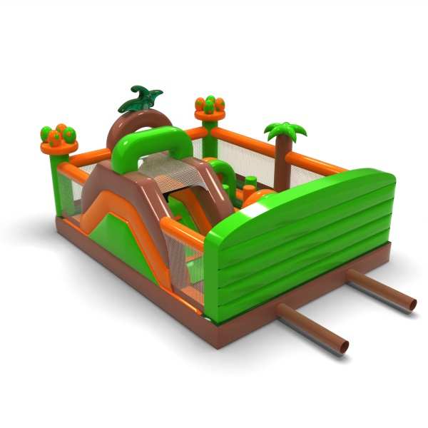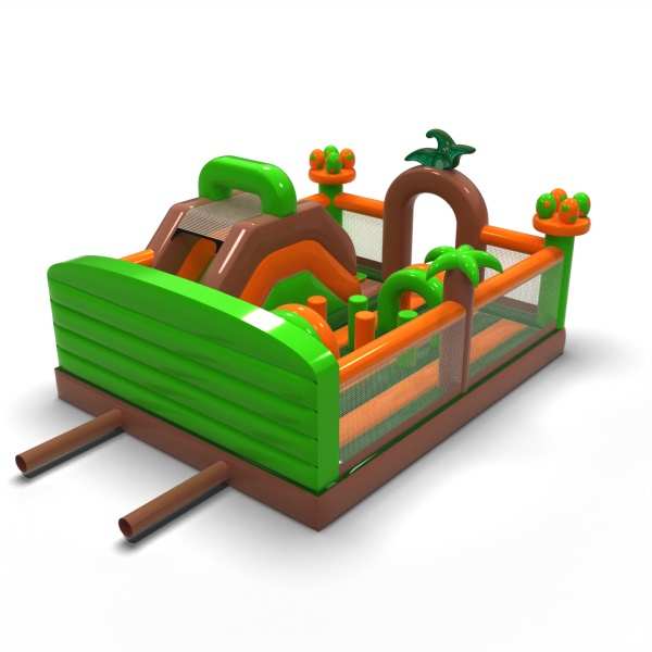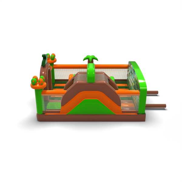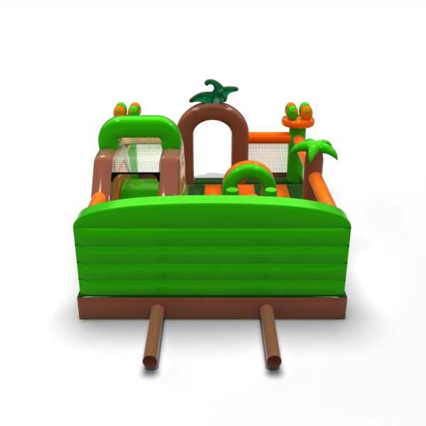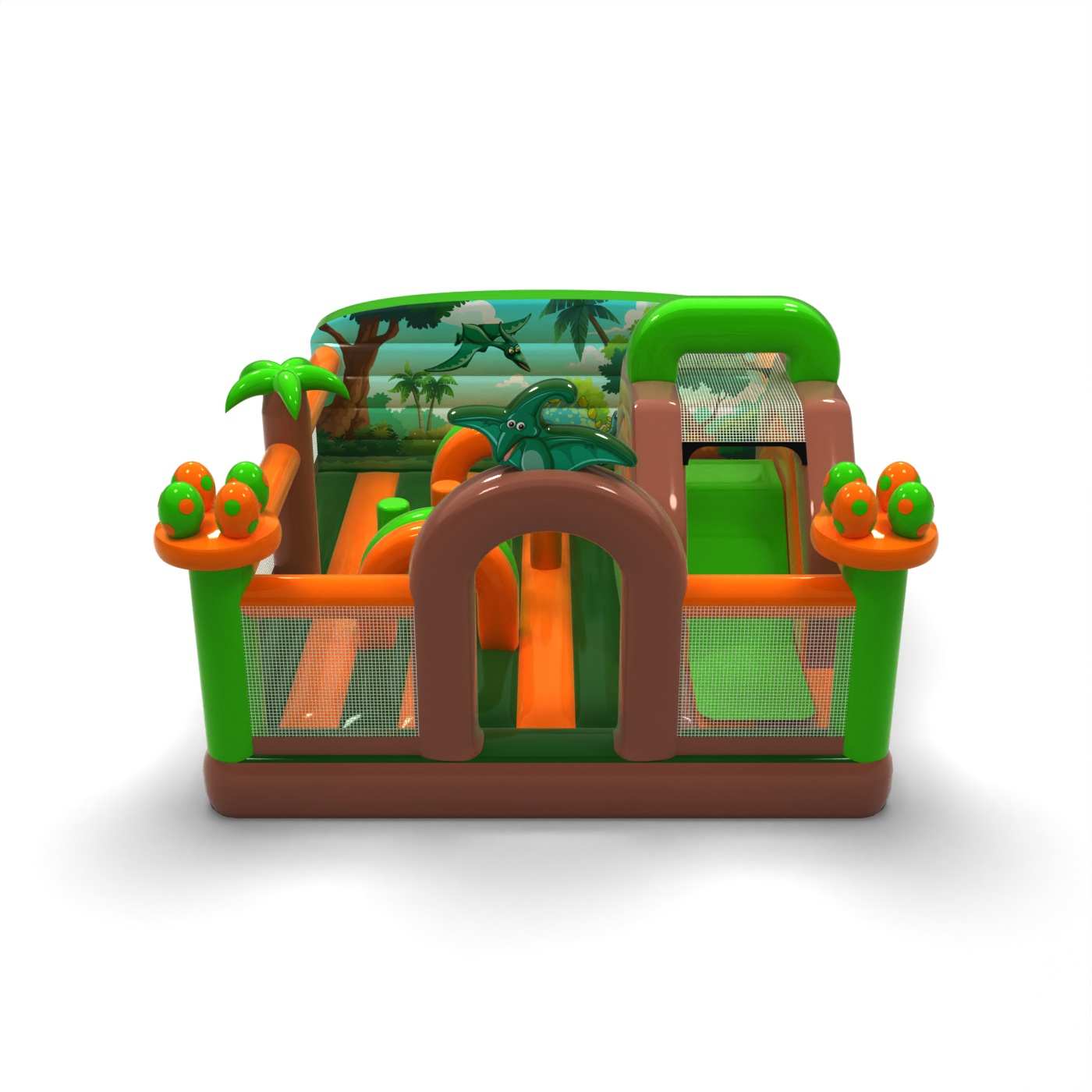 Die Jura-Atmosphäre und die kompakte Form schaffen einen attraktiven Spielbereich, der Kinder schnell anzieht und zur Aktivität anregt. Das Innere des Spielplatzes bietet eine Vielzahl von Elementen zum Springen und Bewegen, so dass das Spiel dynamisch und fesselnd bleibt. Das Dinosaurierdesign bildet eine zusammenhängende, abenteuerliche Erzählung und passt gut zu den thematischen Animationsbereichen. Es ist eine praktische Lösung für Verleihfirmen, die eine Attraktion mit breiter Anziehungskraft und guter Teilnehmerfluktuation suchen. Der Spielplatz eignet sich gut für Festivals, Familienpicknicks und Veranstaltungen im Freien, wo eine kompakte, aber gut sichtbare Attraktion benötigt wird.