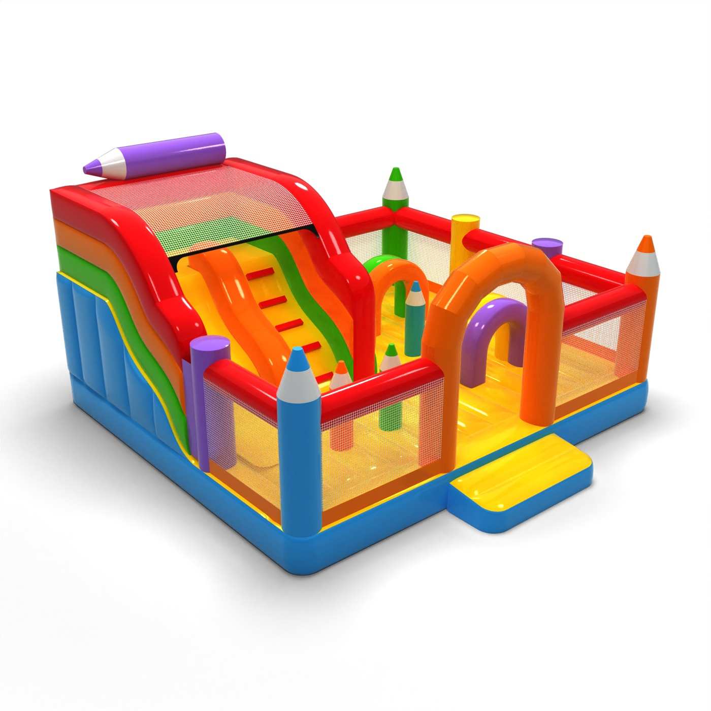 Aufblasbarer Spielplatz 6x6 in Buntstifte Thema