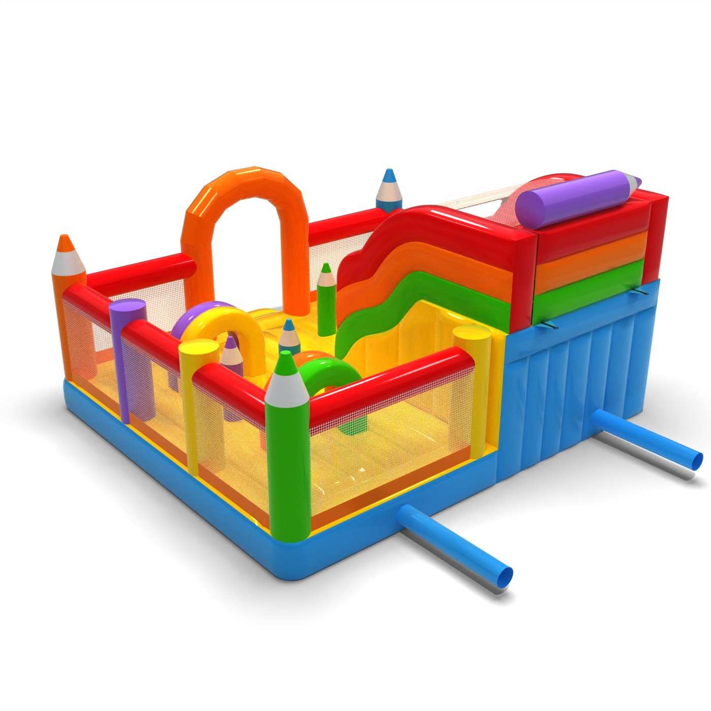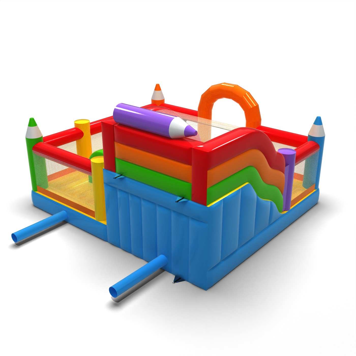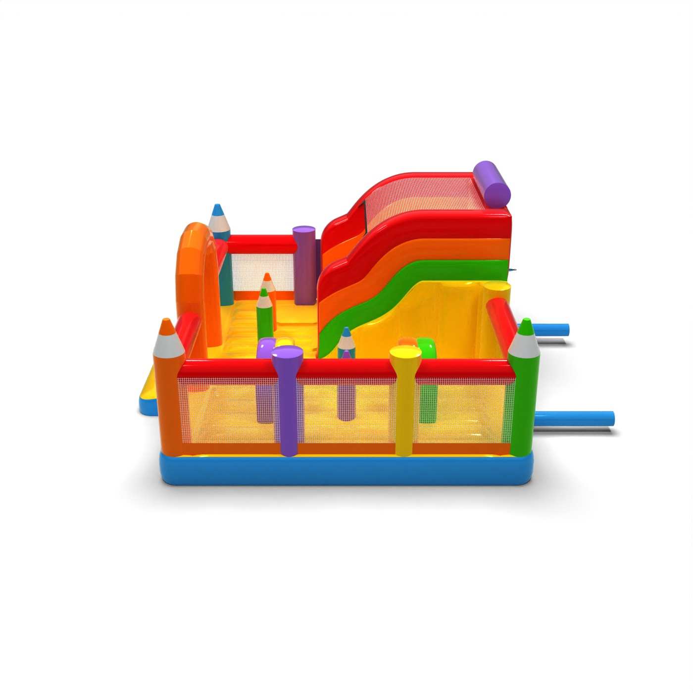 Aufblasbarer Spielplatz 6x6 in Buntstifte Thema ist vor allem für Kinder bestimmt, die auf der Suche nach einem Abenteuer sind und mit Freunden und Gleichaltrigen spielen wollen. Der aufblasbare Spielplatz ist umzäunt und weich und daher völlig sicher zu benutzen. Er besteht in der Regel aus einer großen und einer kleinen Rutsche, so dass Kinder unterschiedlichen Alters hier spielen können. Der aufblasbare Spielplatz Aufblasbarer Spielplatz 6x6 in Buntstifte Thema eignet sich hervorragend für Familienpicknicks, Teambuilding- und Betriebsfeiern sowie Veranstaltungen jeder Art – im Freien und anderswo. Aufblasbare Spielplätze sind eine hervorragende Alternative zu größeren und anspruchsvolleren Hüpfburgen. Wir empfehlen diese Attraktion besonders, wenn Sie Ihr Unternehmen erst starten wollen.