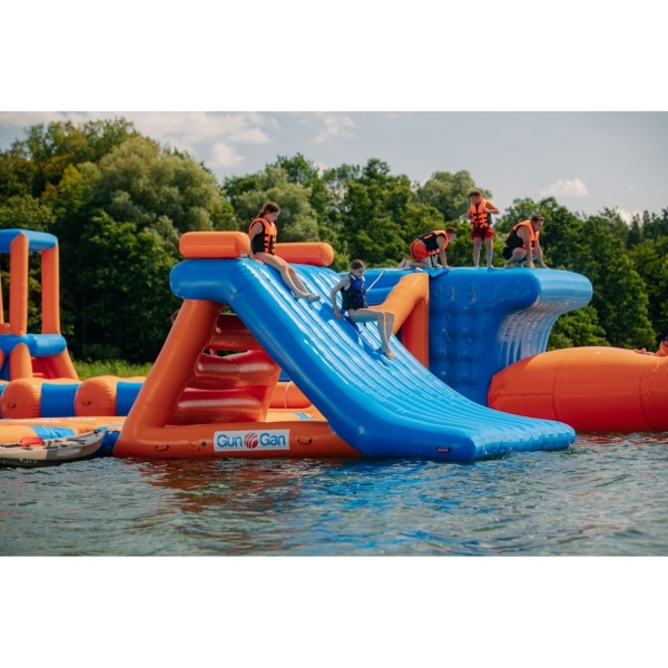 Der Omega aufblasbarer Wasserpark (52 x 25 m) garantiert unvergessliche Emotionen an langen Sommertagen. Diese Produkte sind ein absoluter Hit für alle Altersgruppen, von den Jüngsten bis hin zu den erwachsenen Liebhabern des Wassersports. Aufblasbare Wasserparks können mit zusätzlichen Rutschen erweitert werden. Ein Urlaub am Wasser kann auf einem aufblasbaren Wasserpark zu einer Reihe großer Abenteuer und Verfolgungsjagden werden. Testen Sie sich auf Hindernisbahnen, springen Sie über einen Affenhügel und schweben Sie knapp über der Wasseroberfläche. Springen Sie von einem großen aufblasbaren Kissen ab. Der aufblasbare Wasserpark ist ideal, um den Raum eines Gewässers zu erschließen. Der aufblasbare Wasserpark ist zudem vollständig mobil, zusammenlegbar und transportabel. So können Sie Ihren aufblasbaren Wasserpark mit jeder neuen Saison erweitern. Warum sollten Sie in einen aufblasbaren Wasserpark für Kinder und Erwachsene investieren? Mit einer solchen Attraktion kommen Sie den Bedürfnissen der Kunden entgegen, die an heißen Tagen nach einer Abkühlung dürsten. Mit mehrdimensionalen Hindernissen können Sie eine Attraktion schaffen, die Kunden anzieht, wobei ihre Komplexität Langeweile von vornherein ausschließt. Organisieren Sie Wettkämpfe für Neulinge und für Fortgeschrittene. Aufblasbare Wasserparks ermöglichen es Ihnen, Kinder in einer sicheren Umgebung für lange Zeit zu beschäftigen. So können sich Eltern und Betreuer direkt neben dem aufblasbaren Wasserpark einen Moment der Entspannung gönnen.