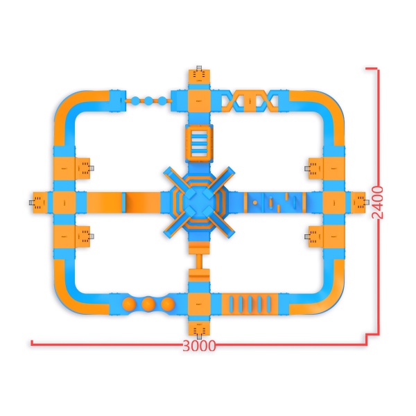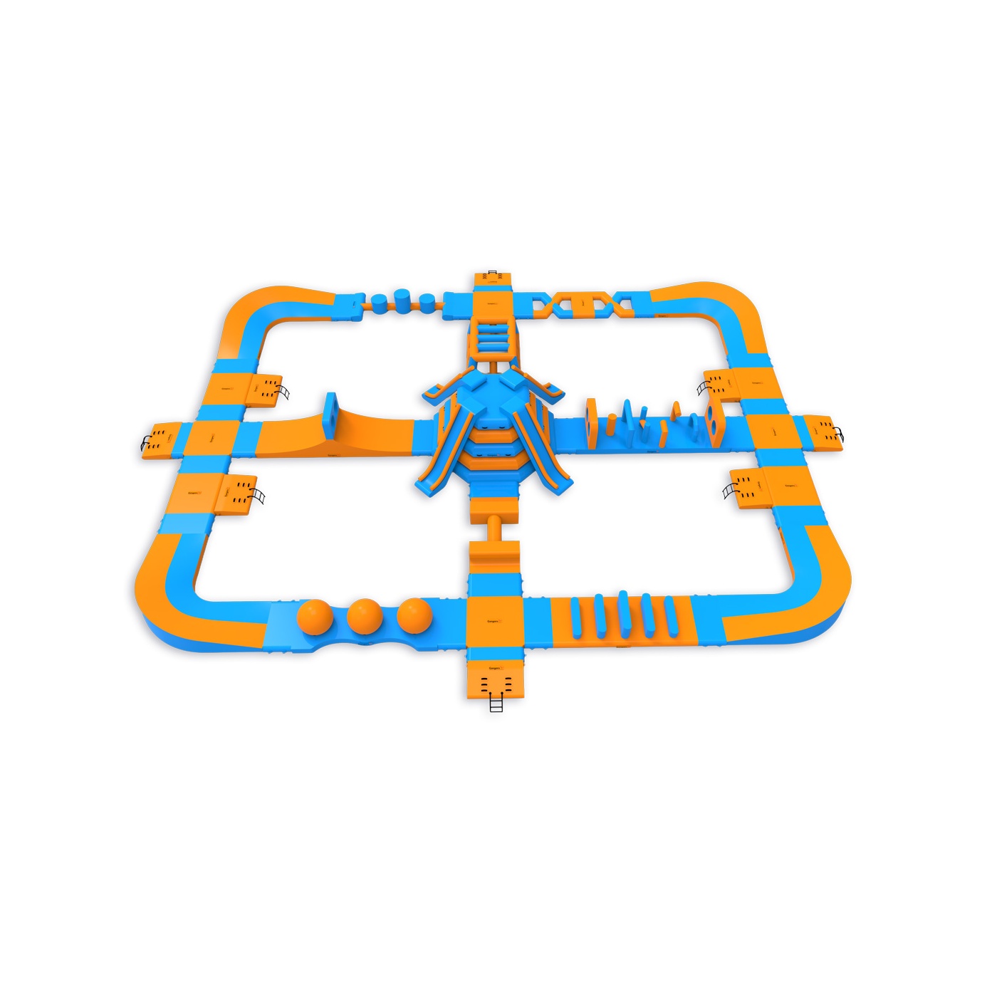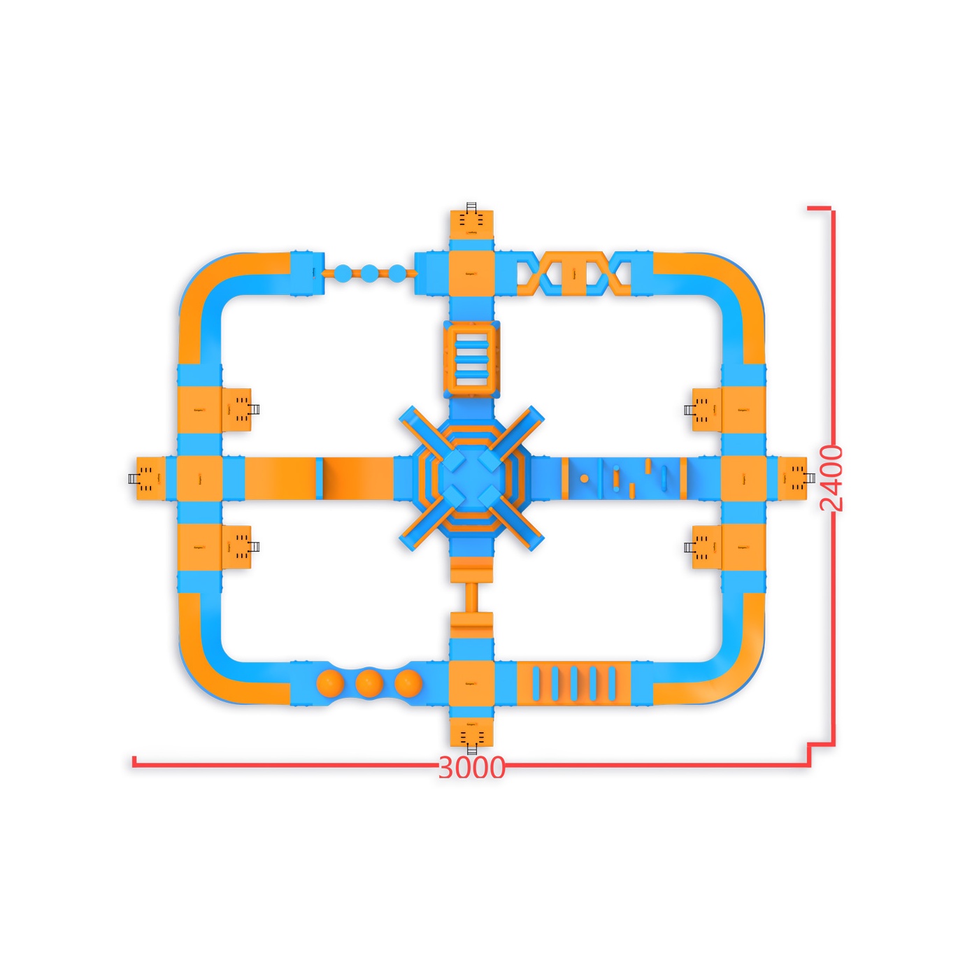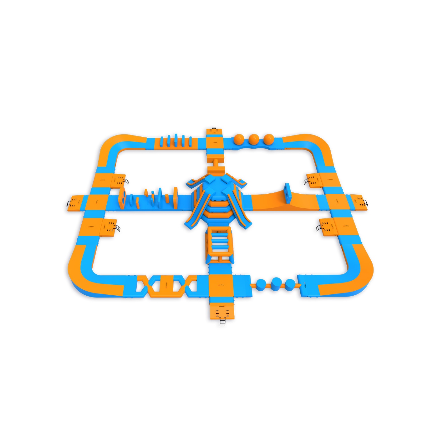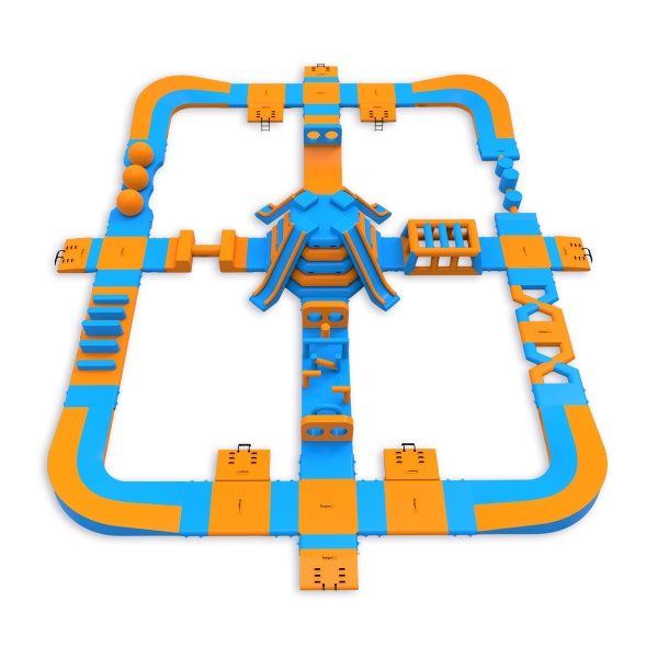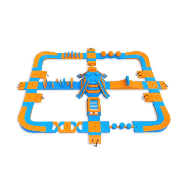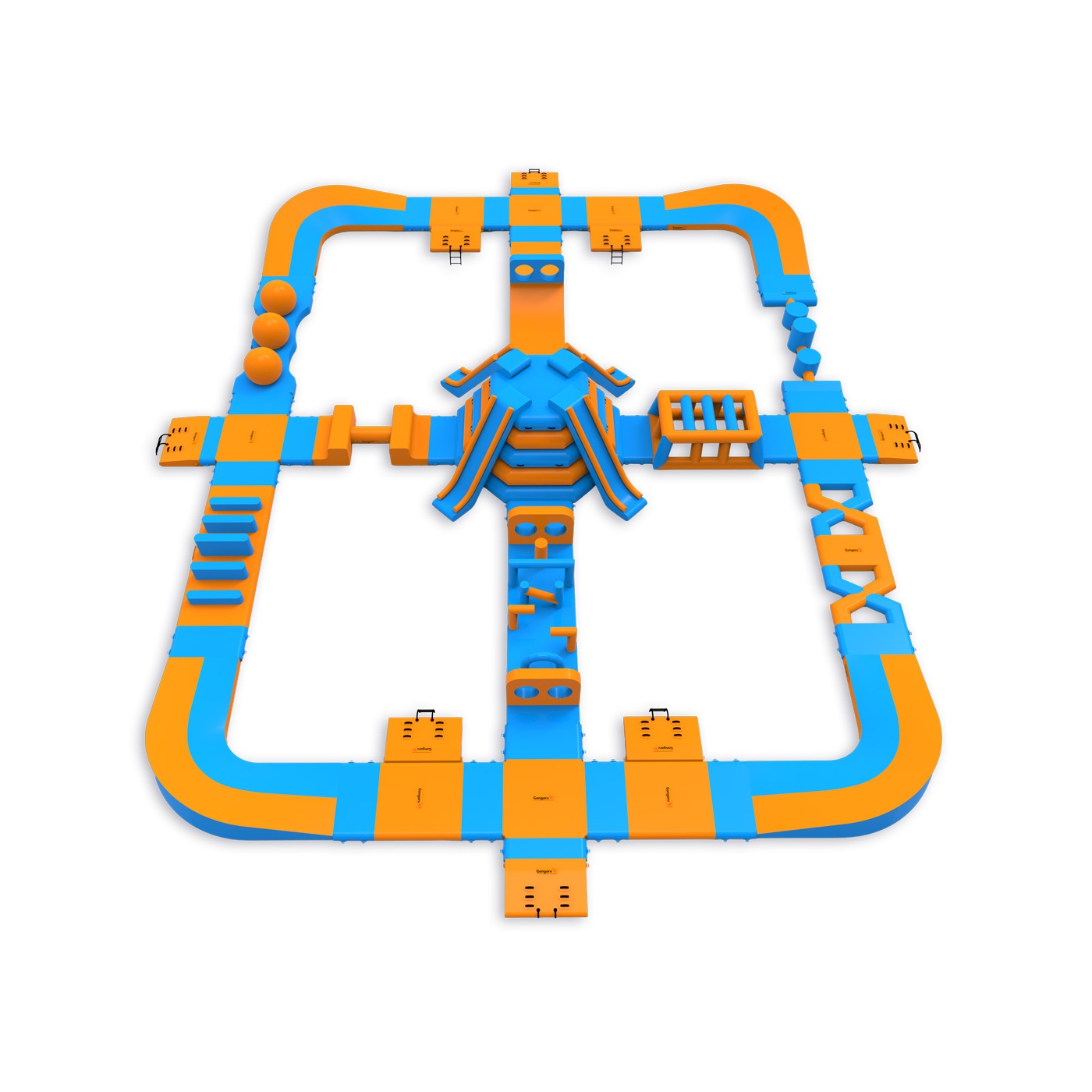 Vier Rutschen in der Mitte des Parks - das ist genug, um die Aufmerksamkeit der Teilnehmer für lange Zeit zu halten. Ein zentraler Turm dominiert das Layout, während ein umlaufender Pfad mit Wipeout-Bällen, Hürden und anderen Hindernissen für Aktivität bei jedem Teilnehmer sorgt - unabhängig von Alter oder Fitnesslevel. Die Anlage ist für 76 Personen gleichzeitig ausgelegt und eignet sich gut für mittelgroße Gewässer, bei denen es wichtig ist, dass die Attraktionen für einen breiten Querschnitt der Gäste zur Verfügung stehen.