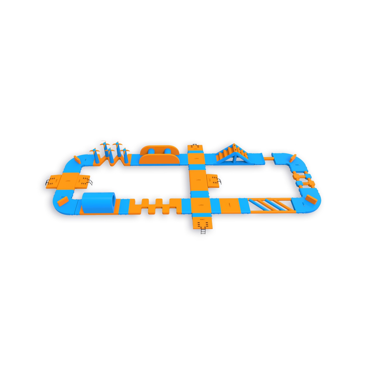 Eine Route, die man immer wieder machen möchte. Treppen, Kletterelemente, Zickzacklinien, Plattformen und ein markantes Hindernis mit Palmen bilden eine langgestreckte 390 m² große Anlage - ideal für Gewässer mit begrenzter Breite, bei denen die Länge der Strecke und die Zugänglichkeit der Attraktion für einen breiten Gästequerschnitt wichtig sind.