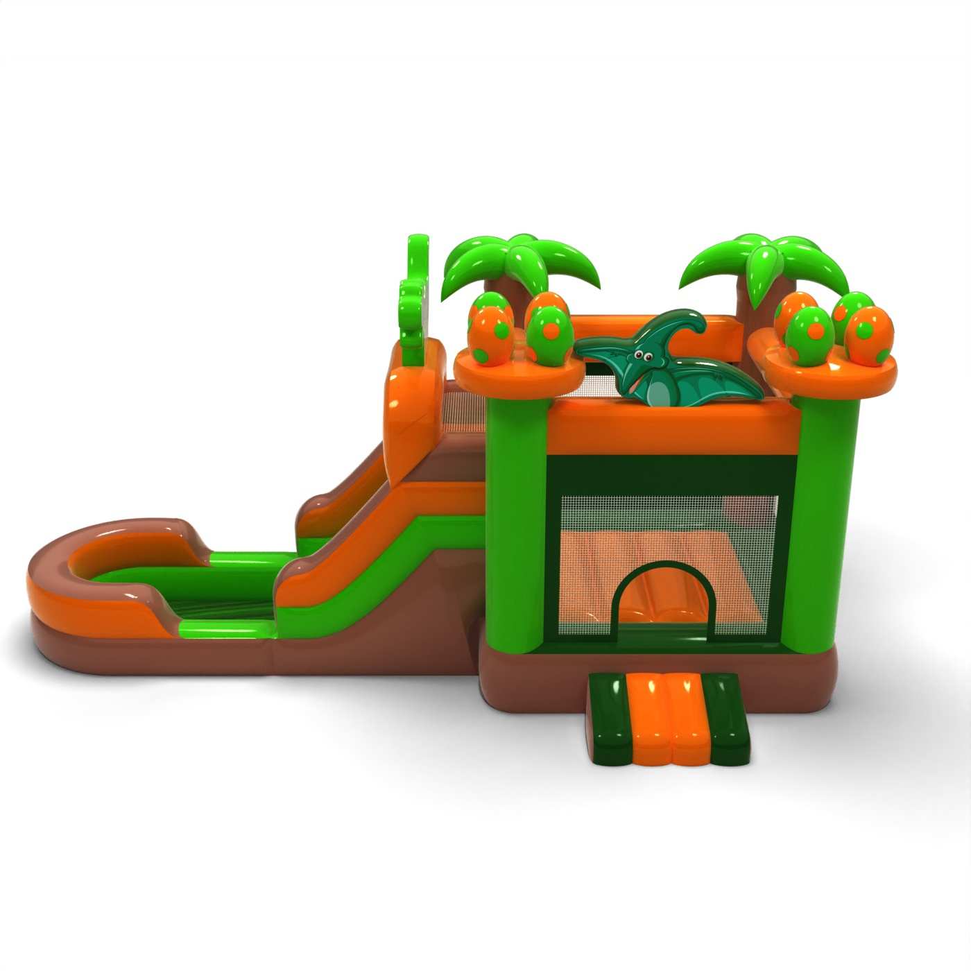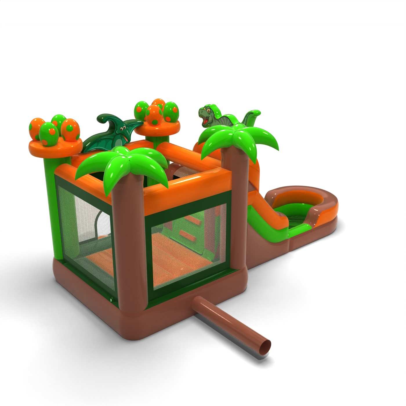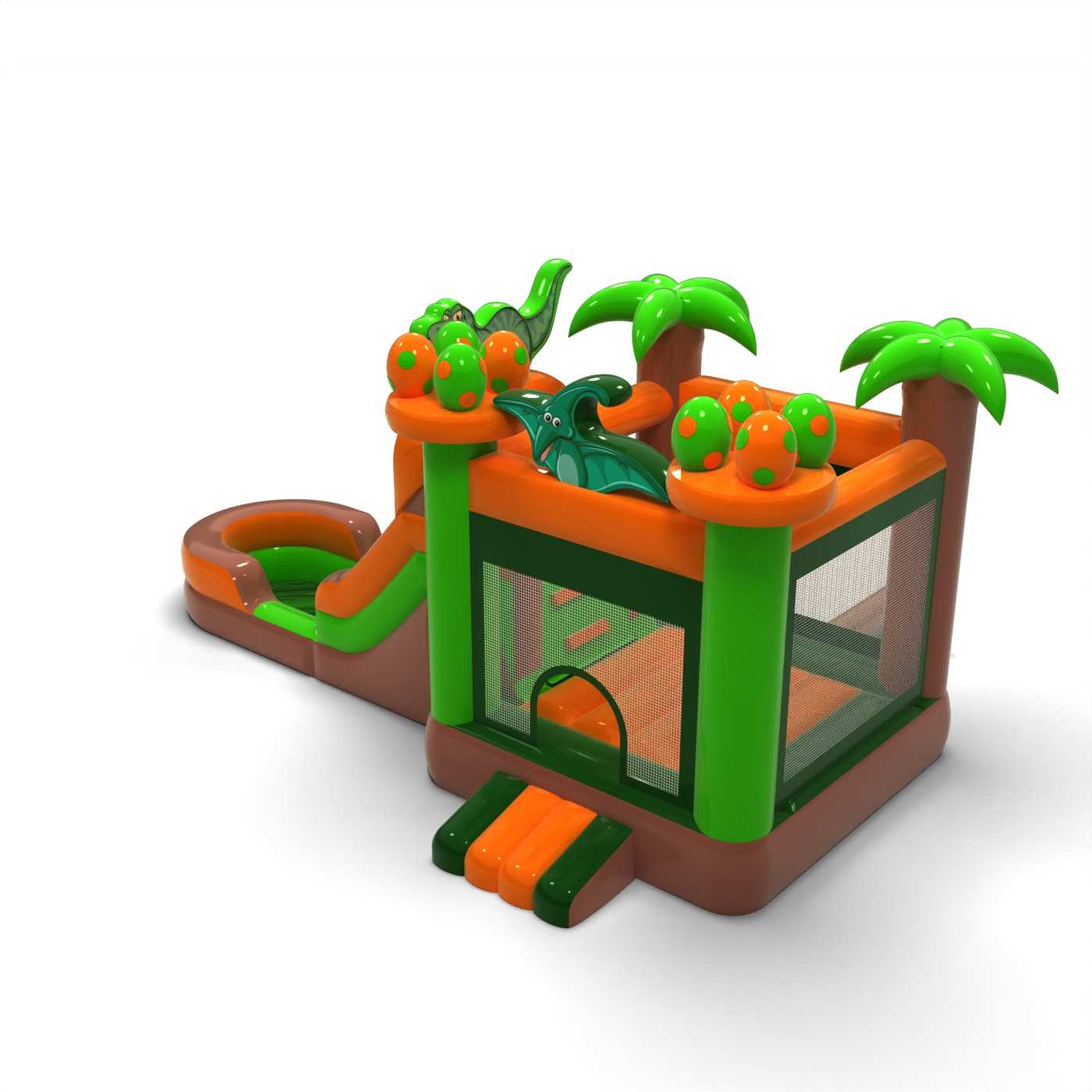 Die kunstvolle Form und die Jurassic-Atmosphäre schaffen einen zusammenhängenden, thematischen Spielbereich, der von der Welt der Dinosaurier inspiriert ist. Die Kombination aus Springen und Rutschen ermöglicht es den Kindern, die Attraktion aktiv zu erkunden und hält sie über einen längeren Zeitraum hinweg beschäftigt. Die aufwändige Optik unterstreicht die Atmosphäre des Abenteuers und unterstützt die thematischen Animationen perfekt. Dieses Modell eignet sich für Veranstalter, die ihre Kinderzone mit einer aufwändigeren Attraktion ausstatten möchten. Das Modell eignet sich für Feste, Stadttage und größere Familienveranstaltungen.