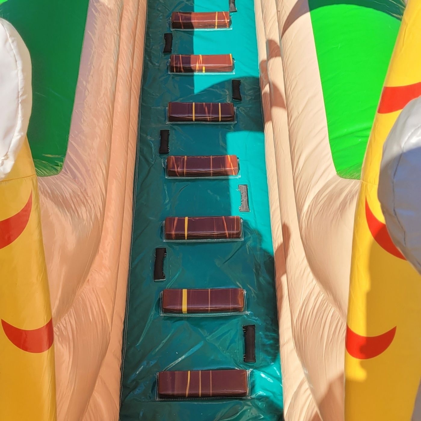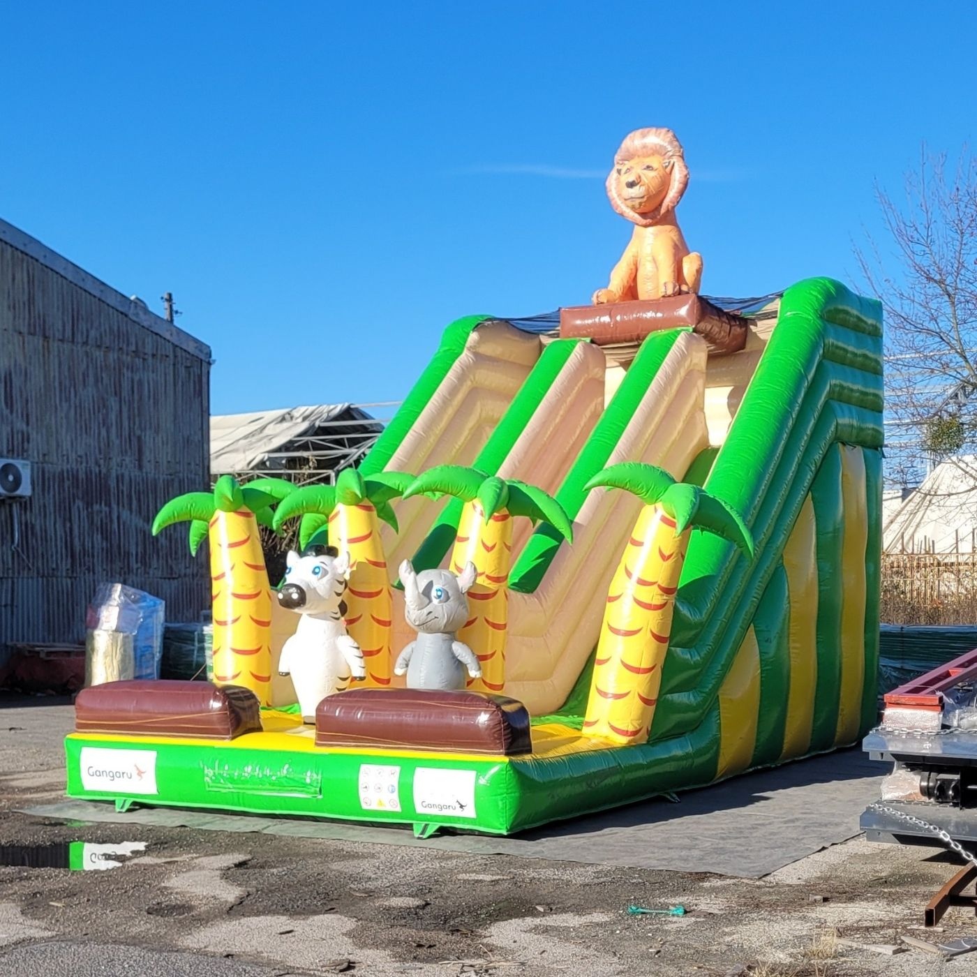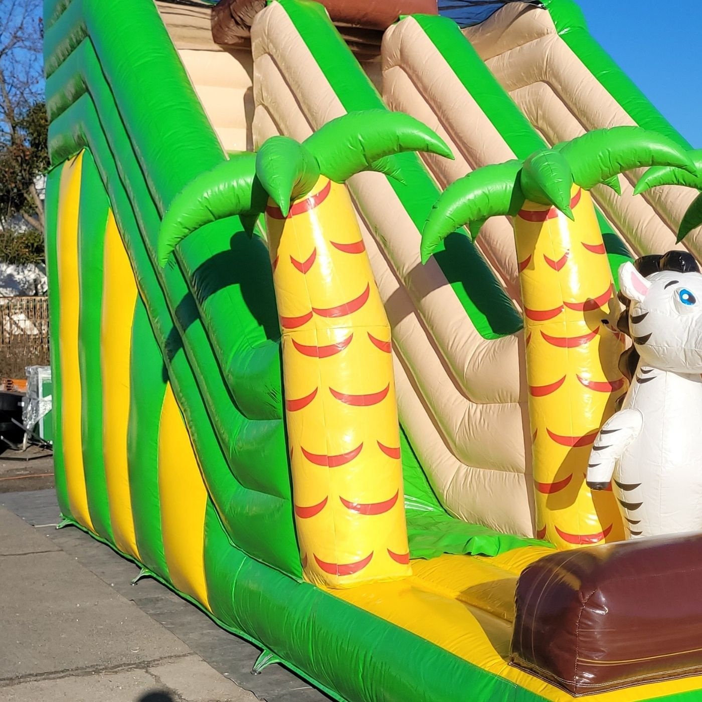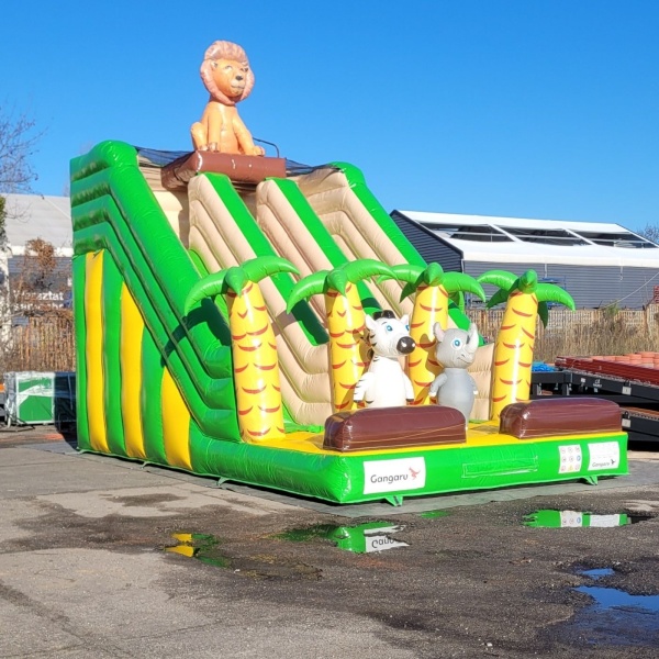 Gebrauchte doppelte aufblasbare Rutsche mit Dschungelthema gehört zur Kategorie der gebrauchten Hüpfburgen – also Lösungen, die gute Qualität mit einem noch besseren Preis verbinden. Die ideale Option für Verleihfirmen, Freizeitparks und Eventagenturen, die ihr Angebot erweitern wollen, ohne das Budget zu sprengen. Im Sortiment findest du nicht nur klassische Burgen und Hindernisparcours, sondern auch weniger offensichtliche Attraktionen wie Sport-Sets, Bumper Balls oder Wasserrutschen. Alle Produkte sind technisch einwandfrei, einsatzbereit und können sofort nach dem Kauf Umsatz bringen.