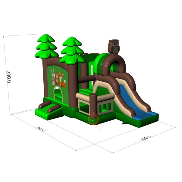 Die Hüpfburg Wald Combo ist eine Attraktion für alle Liebhaber des fröhlichen Hüpfens. Kinder haben eine tolle Zeit auf ihr - springen und spielen Rollen, die dem Thema der Attraktion angepasst sind. Die Hüpfburg Wald Combo ist eine Attraktion nicht nur für die Kleinsten. Hüpfburgen dieser Kategorie sind in der Regel aufwändig dekoriert und enthalten viele Elemente, die den Springspaß im Freien fördern. Hüpfburgen können eine fantastische Erlebniswelt schaffen, in der man mit Freunden und Gleichaltrigen fröhlich hüpfen kann. Die Hüpfburg kann mit anderen Produkten aus unserem Sortiment kombiniert werden, um eine schöne und märchenhafte Erlebniswelt zu schaffen, in der stundenlang fröhlich gehüpft werden kann.