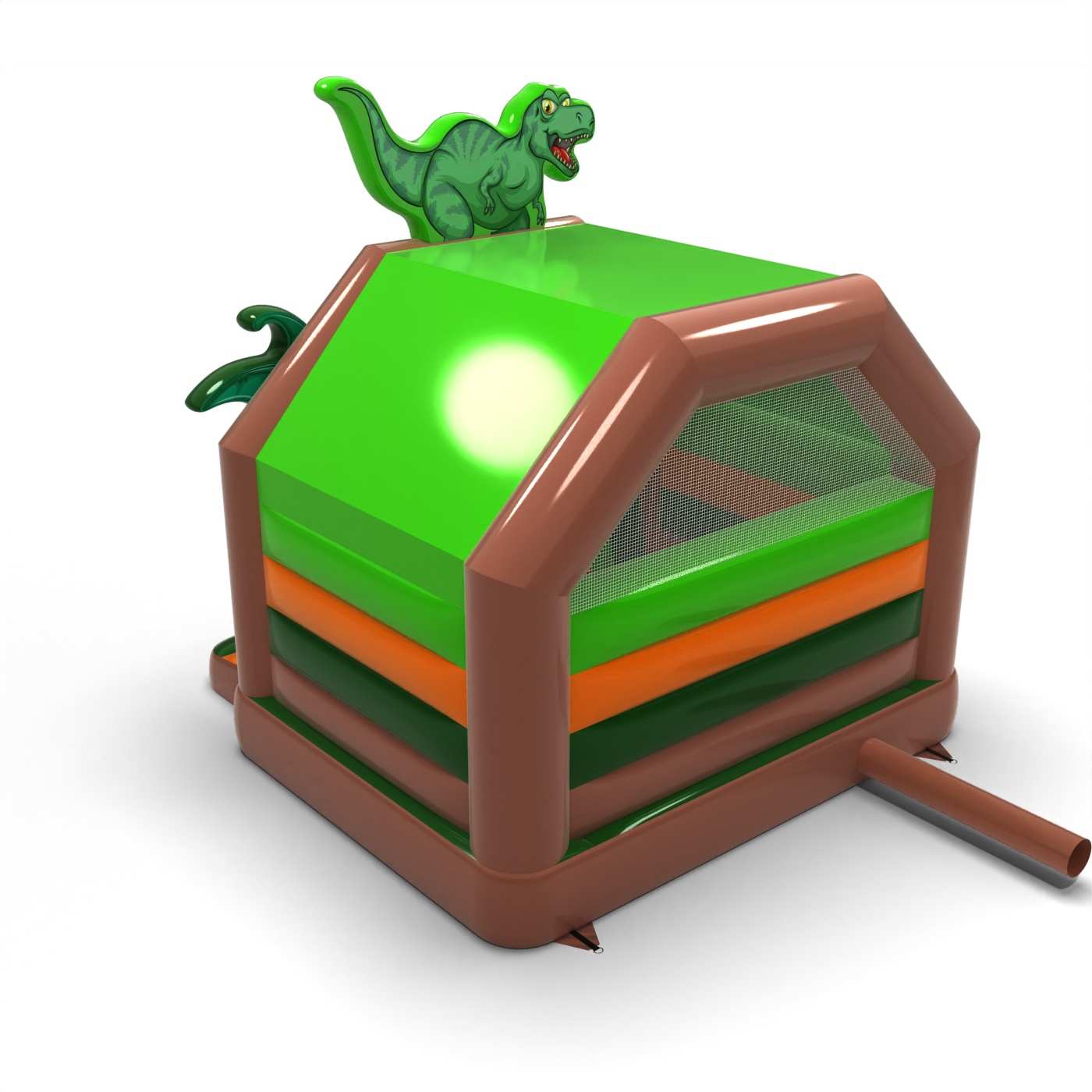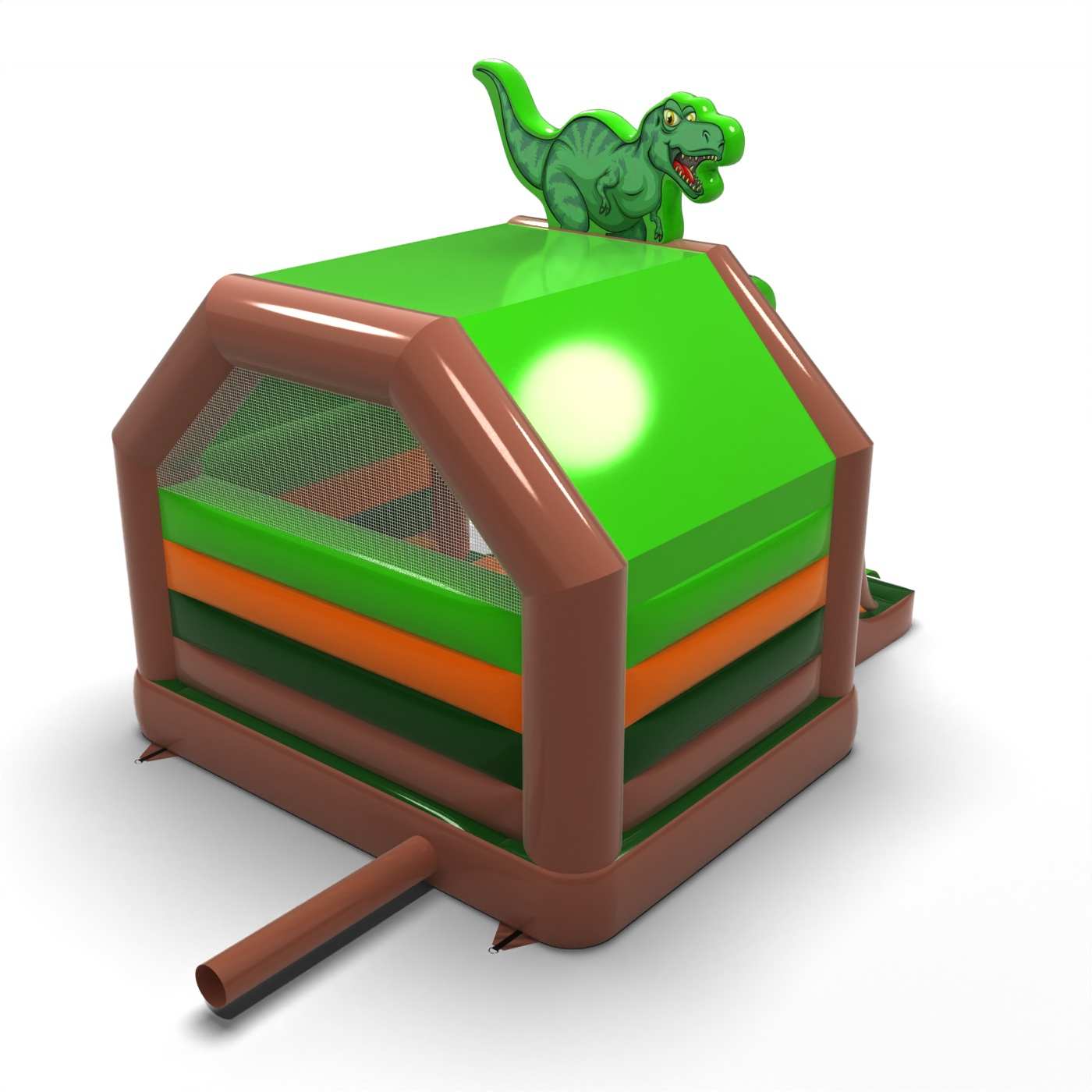Die kunstvolle Form und die Jurassic-Atmosphäre schaffen einen zusammenhängenden, thematischen Spielbereich, der von der Welt der Dinosaurier inspiriert ist. Die Kombination aus Springen und Rutschen ermöglicht es den Kindern, die Attraktion aktiv zu erkunden und hält sie über einen längeren Zeitraum hinweg beschäftigt. Die aufwändige Optik unterstreicht die Atmosphäre des Abenteuers und unterstützt die thematischen Animationen perfekt. Dieses Modell eignet sich für Veranstalter, die ihre Kinderzone mit einer aufwändigeren Attraktion ausstatten möchten. Das Modell eignet sich für Feste, Stadttage und größere Familienveranstaltungen.