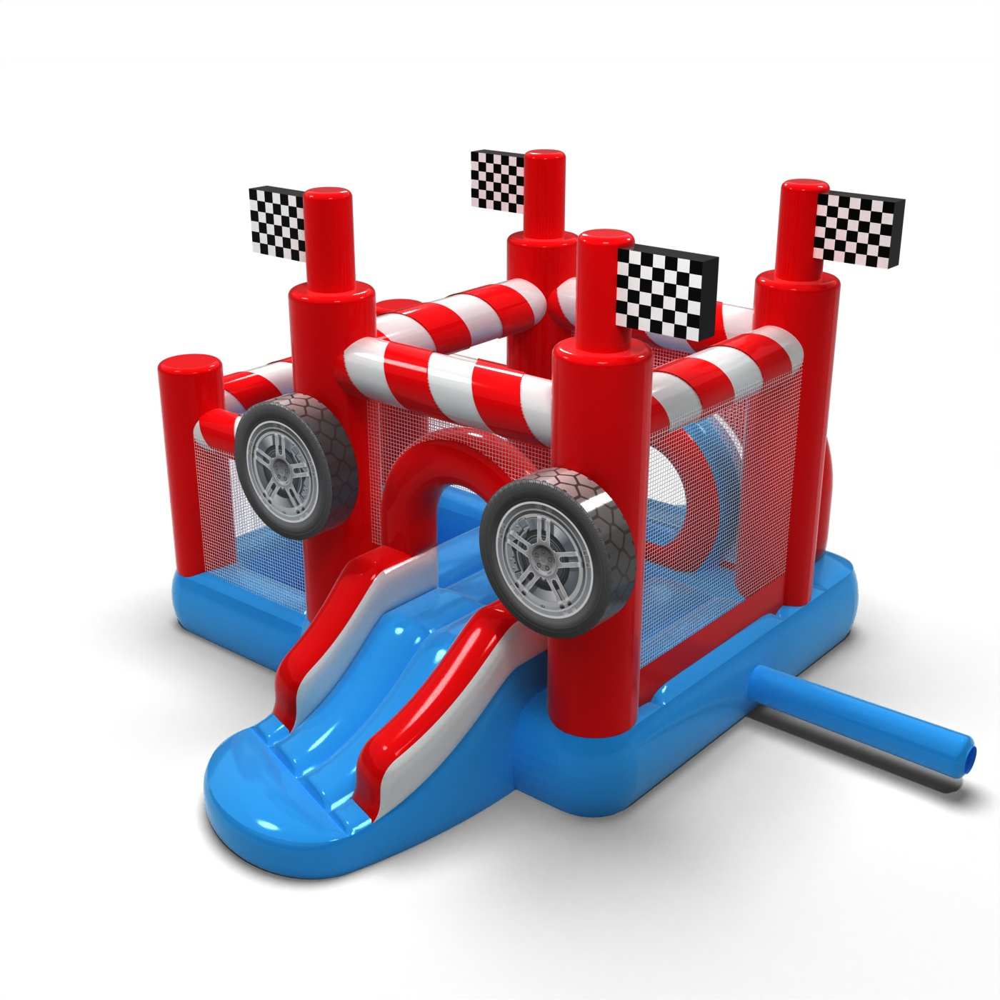 Das sportliche, von der Welt des Rennsports inspirierte Design schafft einen dynamischen, aber freundlichen Spielraum für die Kleinsten. Die Kombination aus einer Hüpfzone und einem Trockenbecken ermöglicht es Kleinkindern, aktiv zu werden und die Attraktion sicher zu erkunden. Die motorisierten visuellen Details wecken Assoziationen an eine Rennstrecke und sorgen schon beim ersten Anblick für Spannung. Dank des kompakten Formats lässt sich die Hüpfburg leicht in eine Vielzahl von Veranstaltungsräumen integrieren. Die Attraktion eignet sich gut für Familienpicknicks, Festivals und thematische Animationen für die jüngsten Teilnehmer.