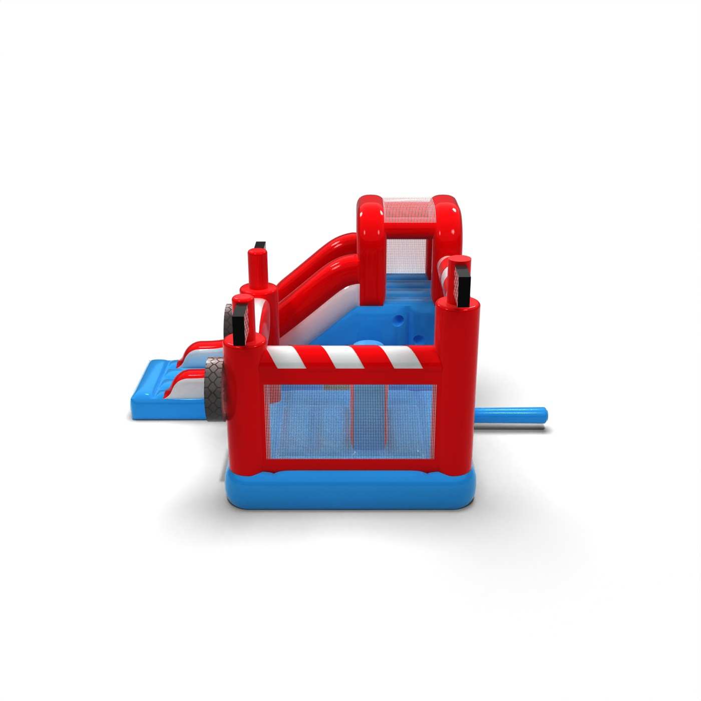 Die rasante Stimmung und das energiegeladene Design verleihen dieser Attraktion einen dynamischen Charakter, der die Aufmerksamkeit der Kinder schnell fesselt. Die Kombination aus Springen und Rutschen sorgt für abwechslungsreichen Spaß und eine natürliche Rotation der Teilnehmer. Die motorisierten optischen Akzente verstärken den Eindruck von Bewegung und Wettbewerb in unbeschwerter, kindlicher Form. Sie ist eine vielseitige Option für Verleihfirmen, die Familienveranstaltungen und thematische Spielbereiche bedienen. Die Hüpfburg eignet sich perfekt für Festivals, Picknicks und von der Automobilwelt inspirierte Veranstaltungen.