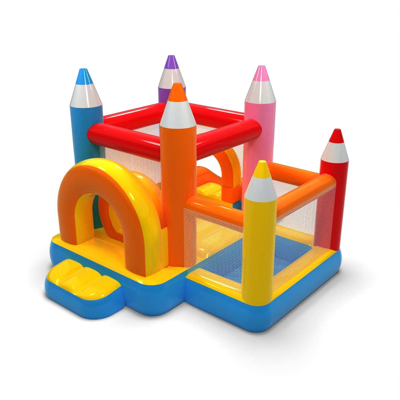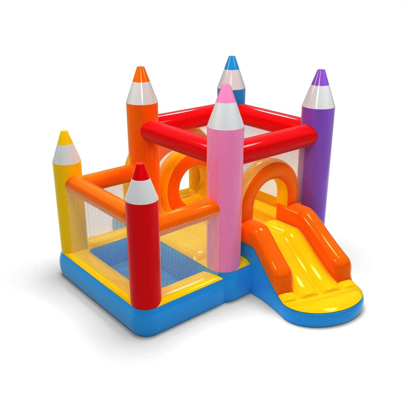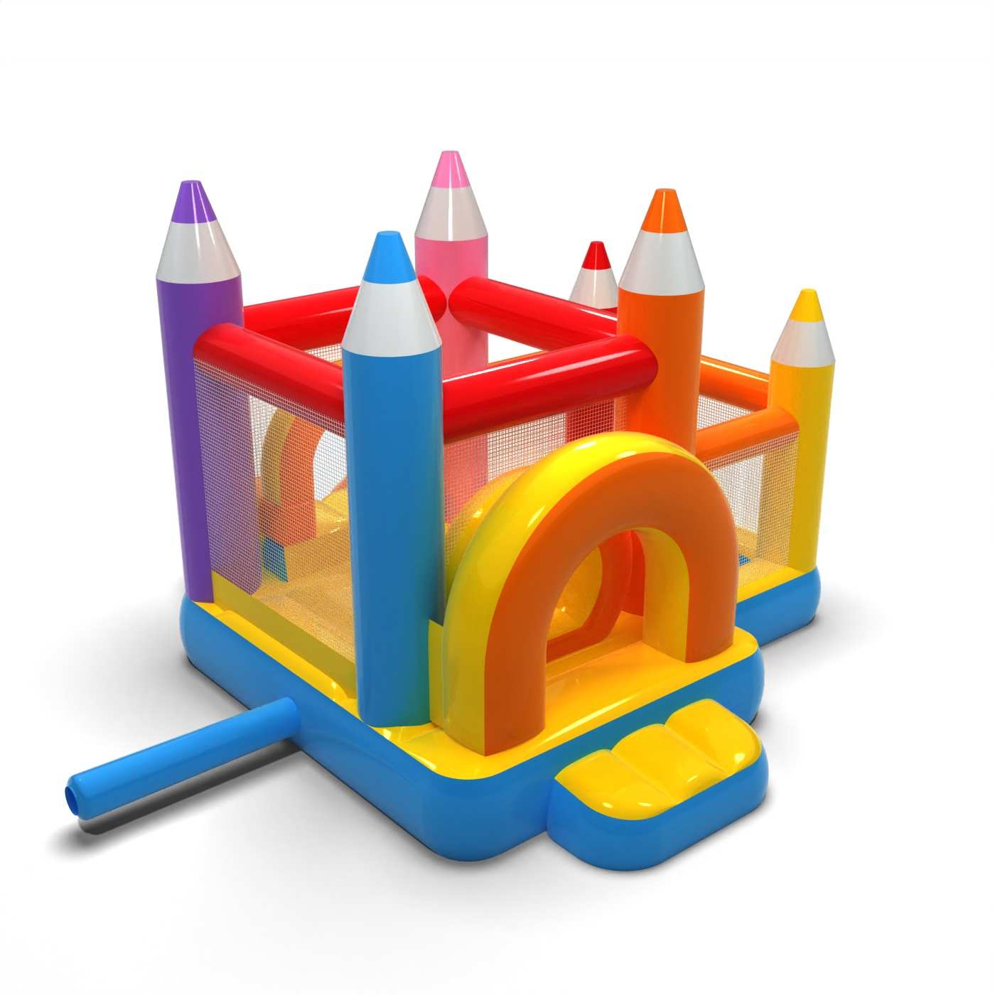 Kleine Hüpfburg mit Trockenbecken für Kinder - Buntstifte